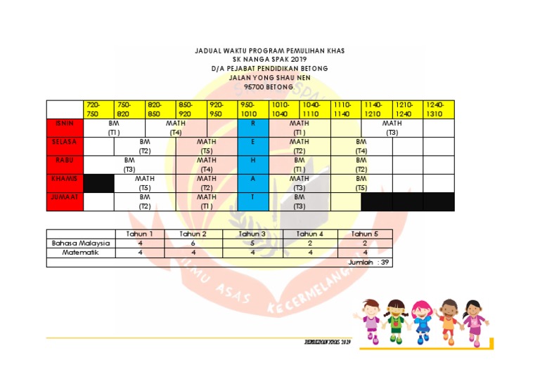 Jadual Waktu Program Pemulihan Khas 2019 Contoh