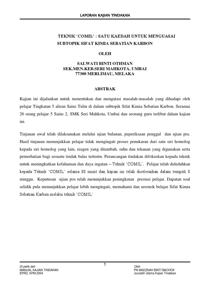 Panduan Penulisan Laporan Kajian Tindakan Pismp Yang Di Selaras