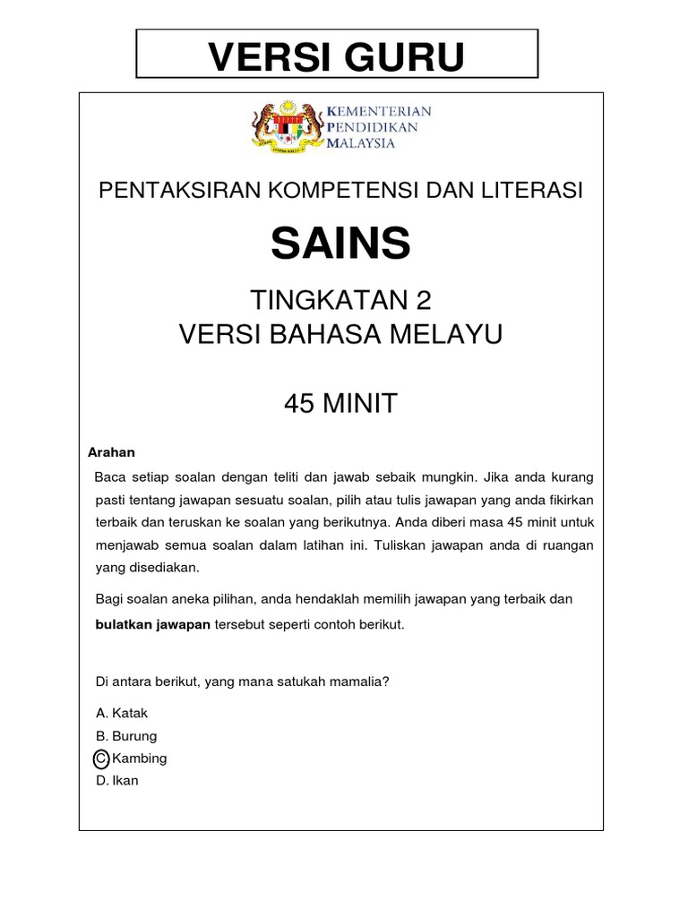 Contoh Soalan Pentaksiran Kompetensi Dan Literasi 2019