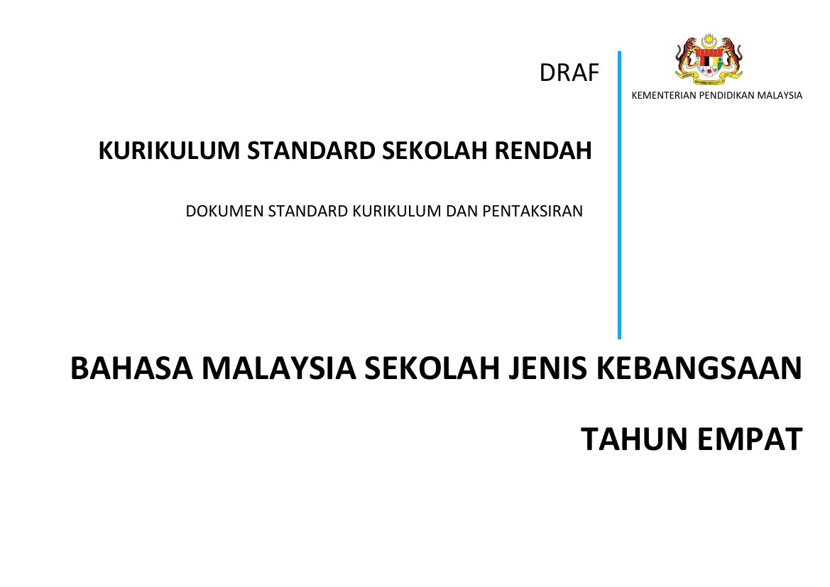 Dskp bm tahun 4 sjk. Kementerian pendidikan malaysia bahasa malaysia sekolah jenis kebangsaan kurikulum standard sekolah rendah dokumen standard kurikulum dan pentaksiran draf tahun empat 2. Disini disediakan dskp kssr bahasa melayu sjk tahun 4 semakan 2017 kurikulum standard sekolah rendah kssr yang dilaksanakan secara berperingkat mulai tahun 2011 telah disemak semula bagi memenuhi dasar baharu di bawah pelan pembangunan pendidikan malaysia pppm 2013 2025 supaya kualiti kurikulum yang dilaksanakan di sekolah rendah setanding dengan standard antarabangsa. Dalam masa yang sama standard prestasi digunakan sebagai satu set kriteria umum yang menggambarkan penguasaan murid terhadap sesuatu tajuk konsep dan istilah yang telah dipelajari. Himpunan dskp kssr tahun 4 menepati segala keperluan yang diperlukan oleh guru guru sebagai panduan di dalam proses pengajaran dan pembelajaran.
