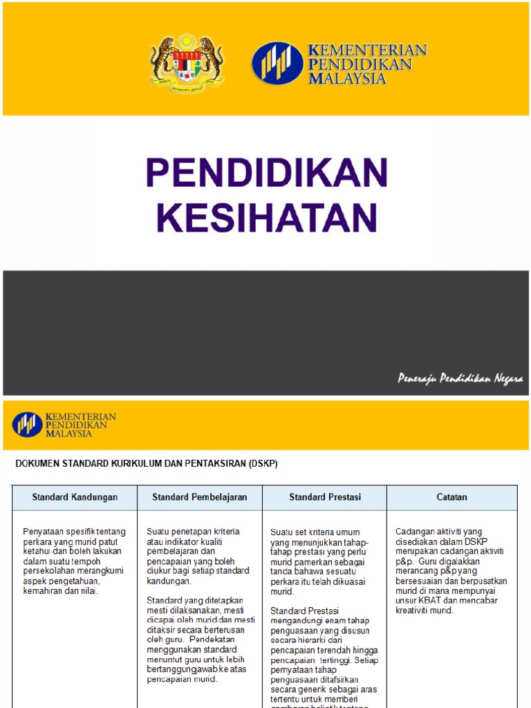 Dskp Pendidikan Jasmani Dan Pendidikan Kesihatan Tahun 1 Sumber Pendidikan