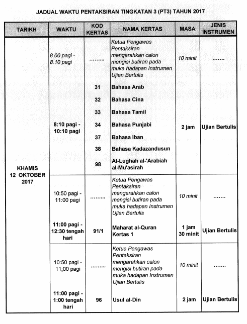 Jadual Waktu Peperiksaan Pt3 2017 Ciklaili