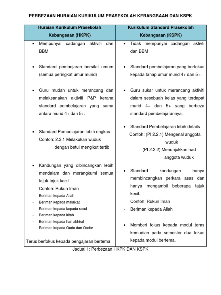 Perbezaan Huraian Kurikulum Prasekolah Kebangsaan Dan Kspk
