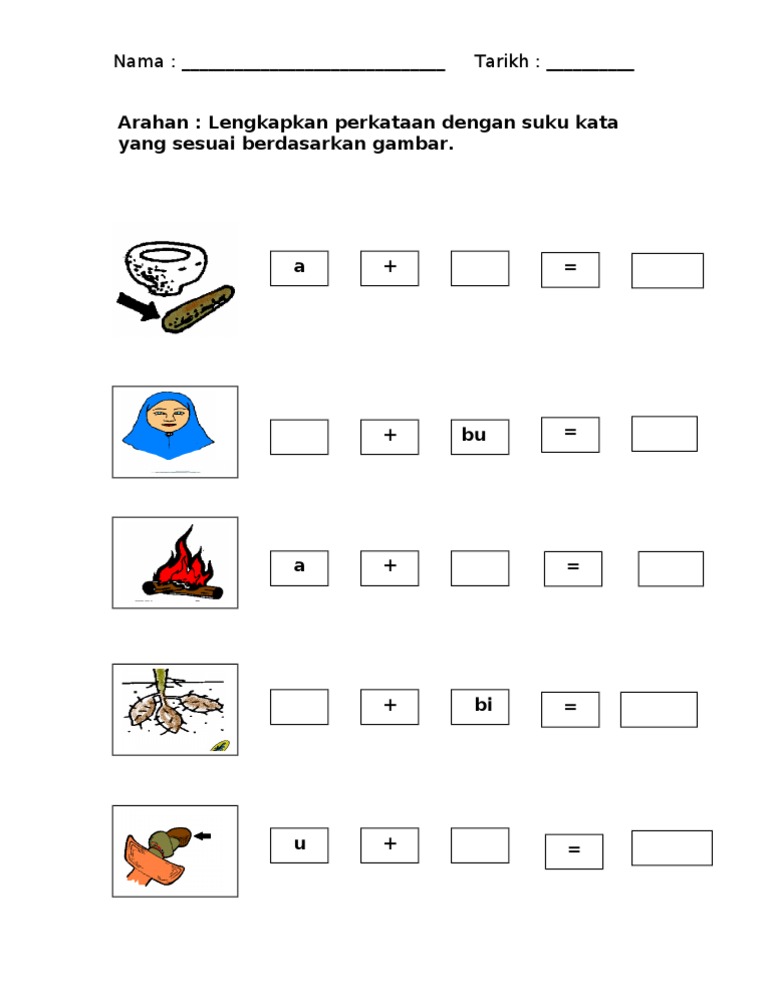 Lembaran Kerja Suku Kata Kv Dan Vkv