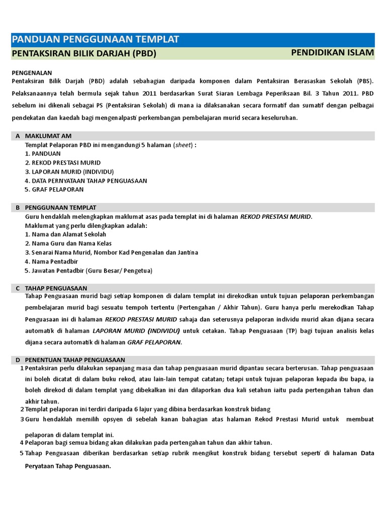 Himpunan Templat Pelaporan Pentaksiran Bilik Darjah Pbd Tahun 2