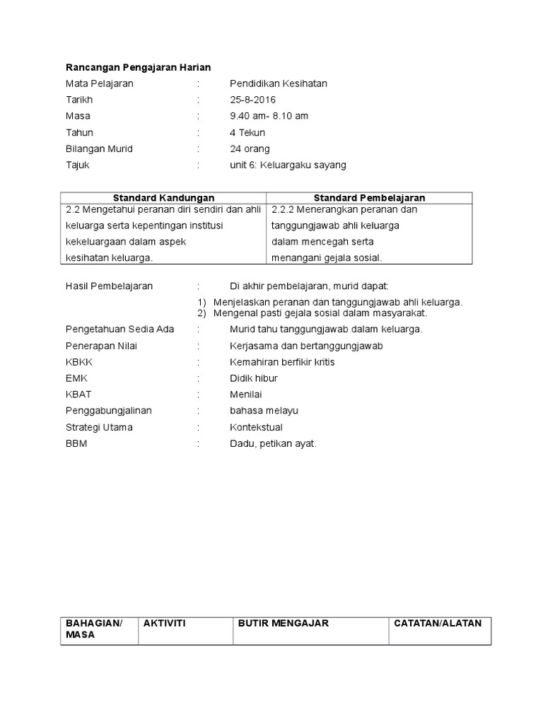 Pendidikan Kesihatan Keluargaku Sayang Lessons Tes Teach