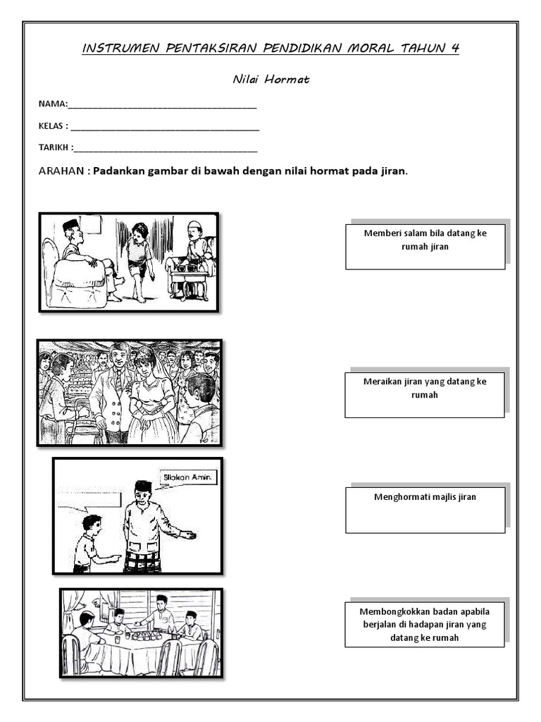 Pendidikan Moral Tahun 4 Hormat Interactive Worksheet