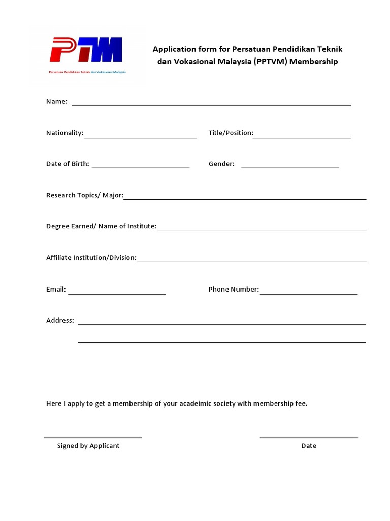 Application Form For Persatuan Pendidikan Teknik Dan Vokasional Malaysia Pptvm Membership