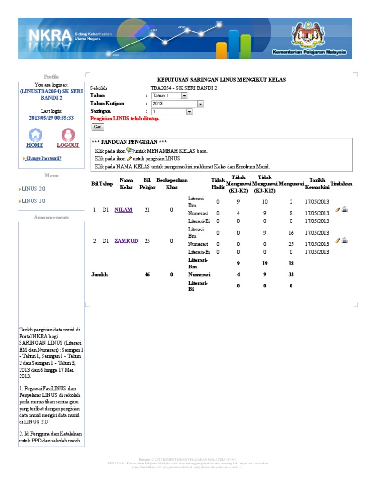 Skpkurikulum Linus 2 0 Saringan 1 2017 Tarikh Tutup Pengisian Data Di Tunda Ke 11 Mei 2017
