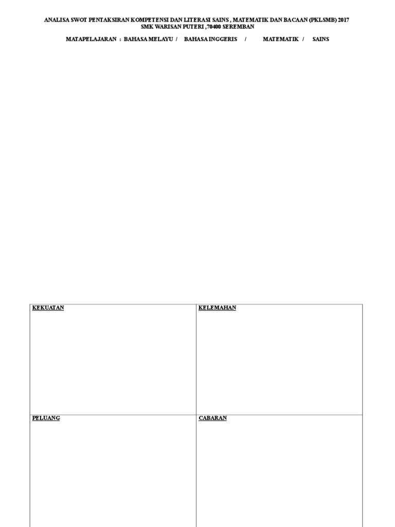 Analisa Swot Pentaksiran Kompetensi Dan Literasi