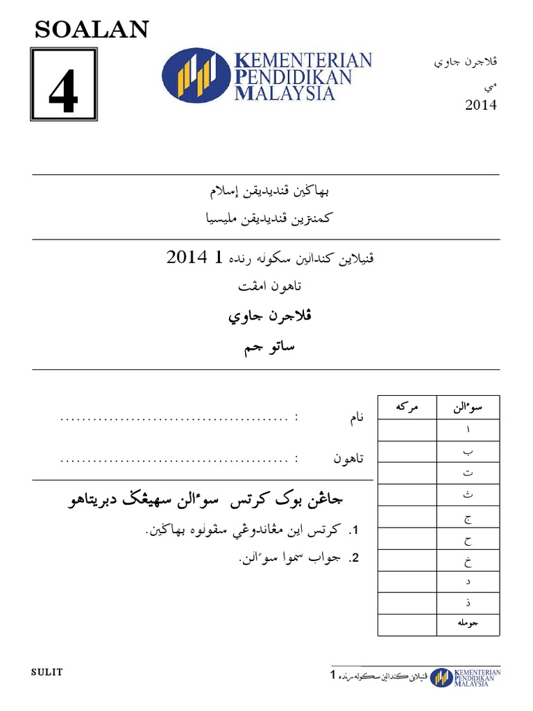 Ujian Pertengahan Tahun Jawi Tahun 1 2017 Sumber Pendidikan