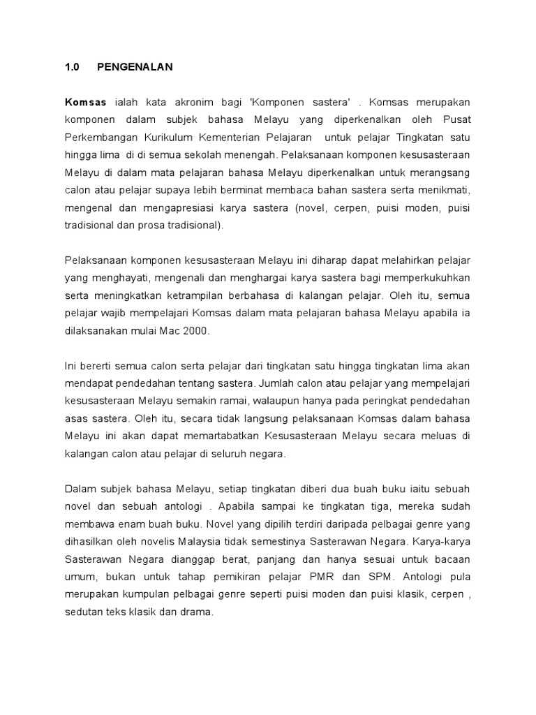 Pengajaran Komsas Bahasa Melayu