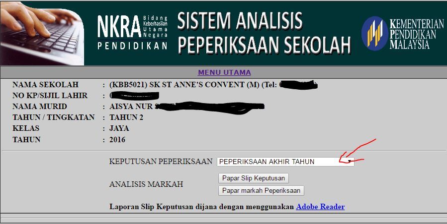 Saps Ibu Bapa Semakan Sistem Analisis Peperiksaan Sekolah Panduan Semasa