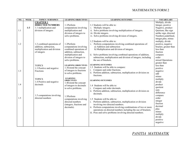 Scheme Of Work Mathematics Form 2