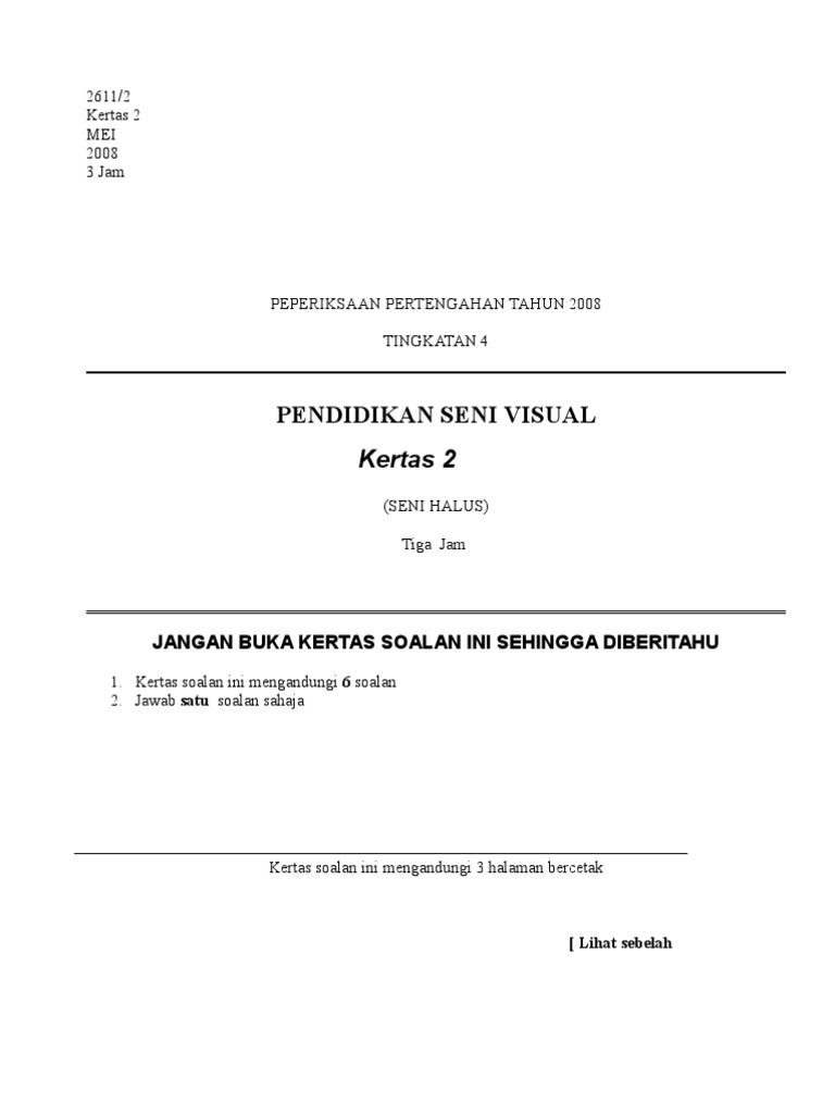 Soalan Pendidikan Seni Visual Untuk Tingkatan 2