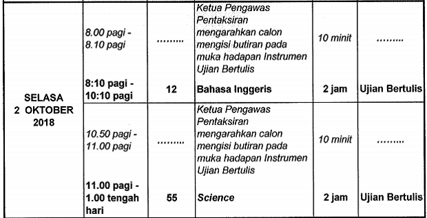Jadual Waktu Pt3 2018 Exam Date Peperiksaan