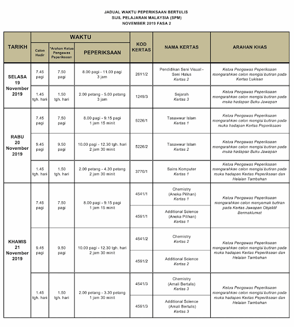 Tarikh Dan Jadual Waktu Peperiksaan Spm 2019 Info Pelajar