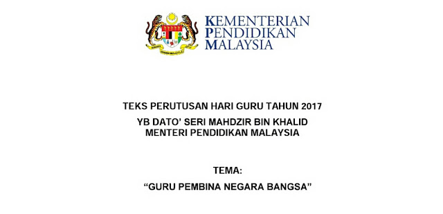 1 teks perutusan hari guru tahun 2017 yb dato seri mahdzir bin khalid menteri pendidikan malaysia tema.